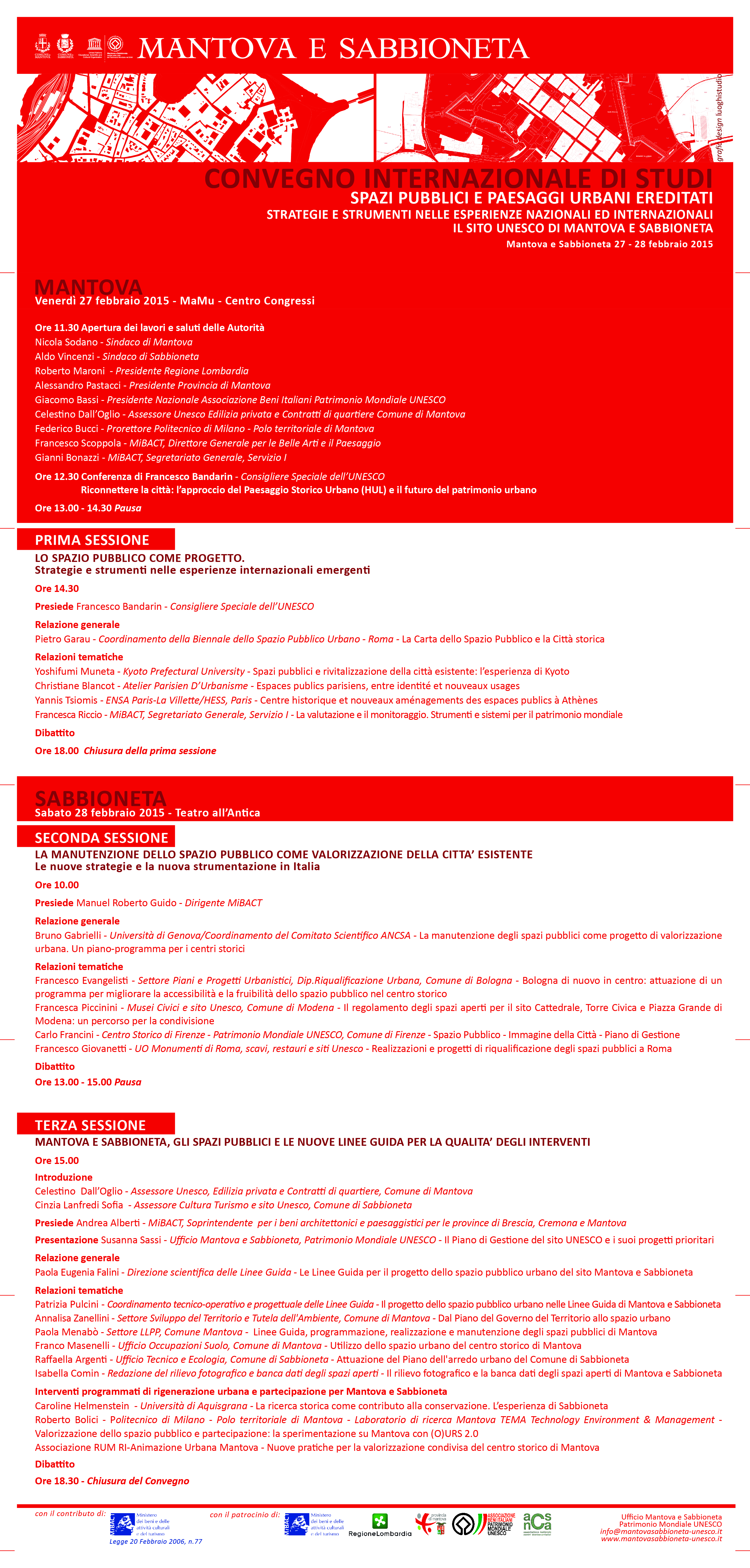 L'Ufficio Mantova e Sabbioneta Patrimonio Mondiale Unesco organizza il convegno internazionale di studi sulle città d'arte e i siti Unesco che si terrà venerdì 27 e sabato 28 febbraio.