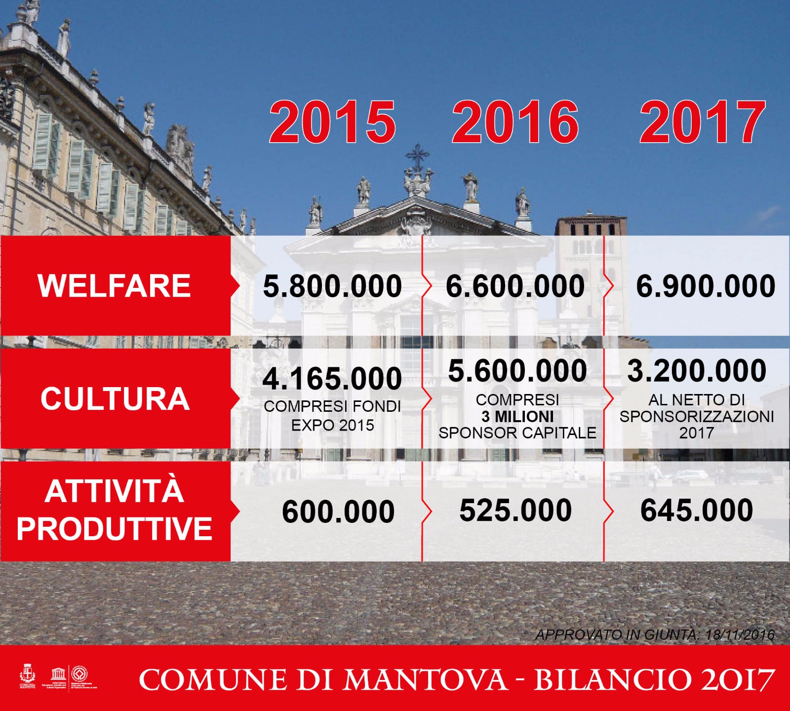 In arrivo altri 18 milioni del bando periferie e i 9 milioni per il Palazzo del Podestà. Nel 2017 prenderà il via anche il progetto riservato ai giovani dai 16 ai 29 anni. La Giunta, anche se il Comune non ha competenze dirette, ha messo a disposizione 500mila euro da investire in tirocini formativi retribuiti e in incentivi all'assunzione di giovani residenti a Mantova in realtà di tutta la provincia. "In dicembre verrà convocato un tavolo di lavoro con i rappresentanti delle imprese, del terzo settore, degli ordini professionali, dei lavoratori e di tutto l'arco politico per costruire la misura nelle sue regole - ha sottolineato Palazzi – in modo da far decollare l'esperienza nel mese di giugno". "E' questo il nostro impegno per combattere la disoccupazione giovanile e mi auguro che l'intervento diventi strutturale anche nel futuro – ha aggiunto Palazzi - Spero che tali misure vengano votate da tutti".